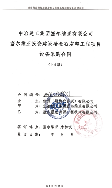 唐鋼鋼源塞爾維亞日產(chǎn)1x600噸天然氣雙膛豎窯機(jī)械、電氣、自動(dòng)化設(shè)備成套