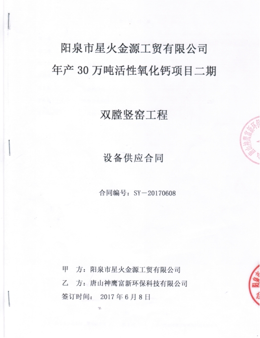 山西陽泉星火工貿(mào)有限公司2×600t/d煤粉燃料雙膛豎窯工程,工程設(shè)計(jì)、關(guān)鍵設(shè)備供貨、自動化控制系統(tǒng)供貨、鋼結(jié)構(gòu)制安、電氣安裝、設(shè)備安裝、窯爐點(diǎn)火調(diào)試等